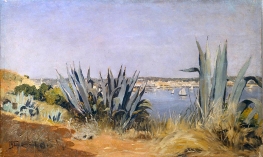 Obra invulgar no conjunto das que pintou, revela uma preocupação com valores plásticos relativamente alheios. Os planos que constituem as paredes e telhados do casario em torno do campanário são sintéticos e prescindem de um sentido descritivo em favor de uma construção analítica. O seu desenvolvimento exibe uma ocupação extensiva do espaço, sugerido como somatório de parcialidades. As gradações do branco crescem de intensidade à medida que se aproximam do céu de cor azul-chumbo. No primeiro plano, espaço vazio oferecido à luminosidade, dois elementos vêm enfatizar a ideia de luz: um chapéu de sol e uma sombra sobre o branco de um muro.