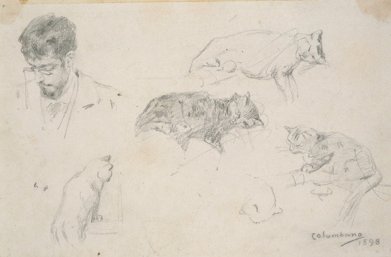 De 1878 datam os primeiros apontamentos de cenas de interior em que ele regista momentos do quotidiano da sua família, numa atmosfera de marcado intimismo. Dois desenhos captam este ambiente, com o pai, a irmã e uma criança, sentados à mesa. Num deles, c. 1878, as personagens dispõem-se de maneira a apoiar a linha de força que, marcada pelo contorno da mesa, atravessa a cena. O pai ocupa o centro, tal como a irmã, e ambos são caracterizados com mais pormenor, naquilo que parece ser um registo de volumes e sombras, assim como de definição espacial. O tratamento dos objectos – uma espécie de natureza morta no primeiro plano – e o sombreado na zona central da mesa assim o reafirmam.