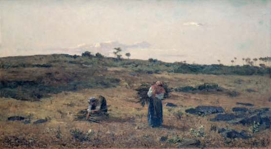 A paisagem, ainda que despojada, tem uma evidência mais marcante que as figuras que nela se envolvem. O pathos destas é milletiano: um realismo dócil as anima com uma certa melancolia, contudo não revelam a dimensão escultórica deste. Tal como em Millet, estas camponesas são entendidas na tradição de uma ancestralidade indiferente às marcas da modernidade, alheias à nova civilização industrial. Neste sentido é ainda um olhar romântico, já no seu termo, que as figura.