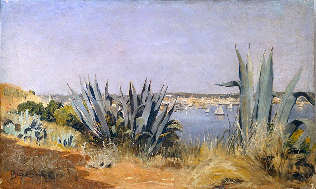 Exemplo de uma pintura despojada de artifícios, estas Piteiras revelam uma extrema simplificação dos pequenos toques de cor, situação que evoca a qualidade da aguarela. O tema do primeiro plano interrompe e ritma a perspectiva – característica comum a muitas das suas pinturas – com os elementos verticais e agressivos que são as folhas. A presença deste tema em primeiro plano repõe com carácter emblemático o espírito meridional do lugar, aspecto a que a pintura de João Vaz foi sensível.